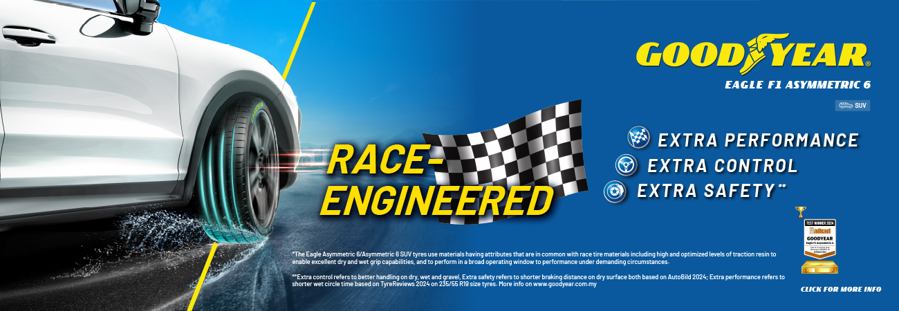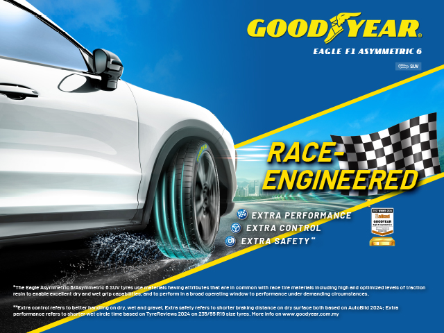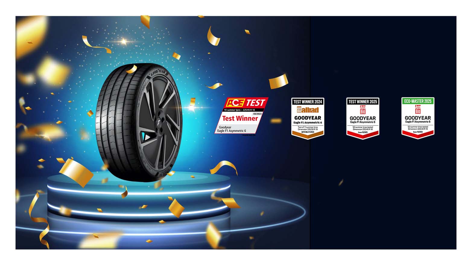 The Goodyear Eagle F1 Asymmetric 6 has excellent wet braking and swift lane control, delivering race-grade handling experience.