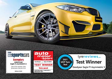 EV with torque, quiet cabin, battery range and heavy vehicle makes tire more demanding on performance. The Eagle F1 Asymmetric 6, tested on EVs, in excels in: